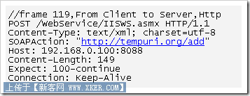 双击Client端访问IIS上面的Webservice,然后得到下面的一个数据包列表: