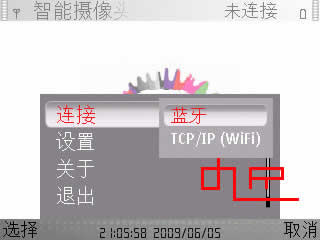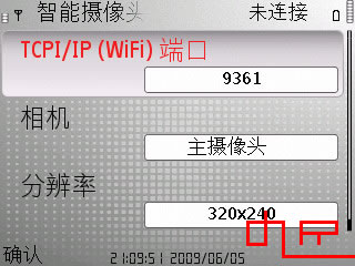 因为我们是用蓝牙连接的,所以对于“TCP/IP端口”不用去改动,只要改动分辨率即可。不过E71装好后默认为320*240,所以我们也不用去改动。摄像头选“主摄像头”,对于行货E71只有一个摄像头,水货E71还支持前置摄像头,这个关系不大。