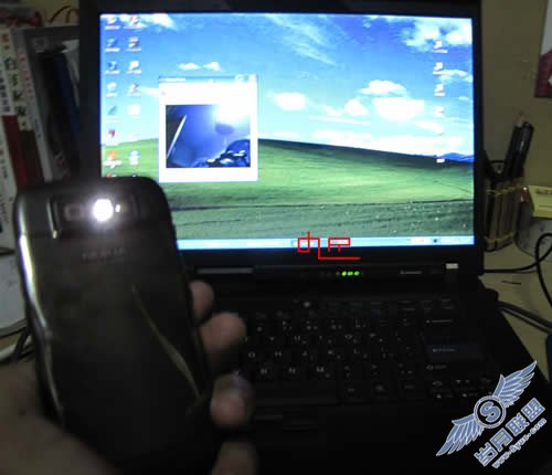 图为我拿着E71对着显示器的截图,我也用数码相机拍了一些视频同步的图片,如下: