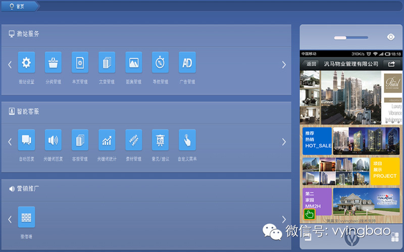 ☆完美的后台:微赢宝智能建站系统后台从设计布局到操作体验都倾注了工程师大量心血,每个细节功能上都体现出最细腻的体贴。