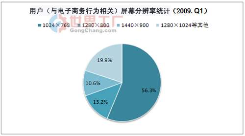 2009年第1季度用户(与电子商务行为相关)屏幕分辨率统计
