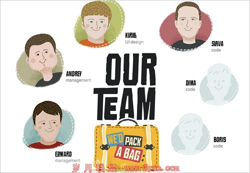 用户总是会很想知道网站、产品或者服务背后的人,因此一个有爱的团队展示页面上显得尤为重要。仅仅提供联系方式是远远不够的,还需要向用户展示他们要联系的这群人有着怎样的个性和气质,要让团队显得平易近人而又值得信赖。要达到这样的目的,使用手绘图片是一种很好的做法。例如——