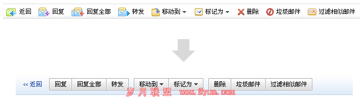 上面的是我们外贸邮界面目前的状态,所有的操作都并列摆放,随着功能的增多,用户识别的效率大大降低,优化的方案是将相关的操作进行分组,正是运用关联和并列的信息关系进行设计