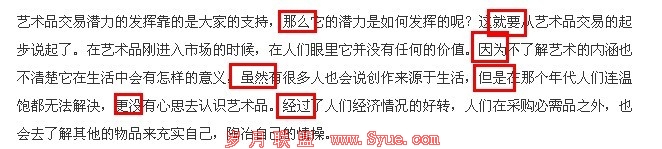 显然,该网站优化人员在优化“艺术品交易”这个词,但是这样的文章标题不可取,标题只有两个字的差别,相似度虽然高,但相似度太高会影响文章的收录。笔者再观看其文章内容,每一篇文章大概在四百字左右,而且里面堆满了“虽然”、“但是”、“因为”与“所以”等词汇。可以说该站是为更新而更新,文章质量低下。搜索引擎经过消噪处理后,改四百字的文章变成不足一百字干巴巴的文章,毫无价值。结合文章标题,文章内容,该站收录不理想,长尾词导流不多也在情理之中。
