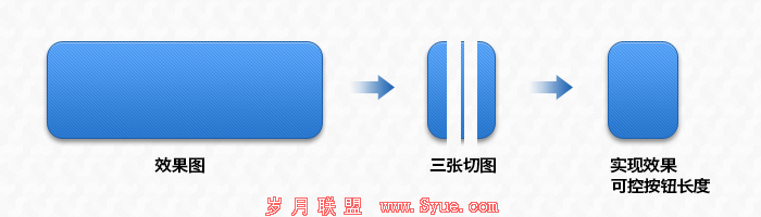 我们的目标是把按钮分成三段,保留左右圆角部分,找到中间纹理可复用平铺的部分,同事确保中间纹理可以与左右两张图无缝连接,这样按钮的长度就变成可控的了,可以适用于不同的场景。