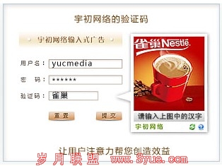 甚至有的广告商直接把广告做到了用户登录时必须经过的验证码,这就是纯商的运作了。