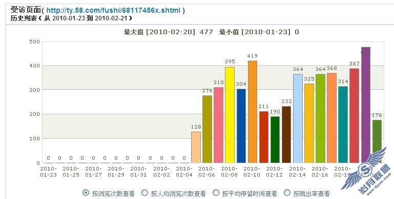 第一篇发在了天涯很火的贴图专区,发过之后大概过了五六分钟的 时间,我看了一下那篇帖子,已经被浏览了200多次,然后看看自己的网站上的那个页面增加了多少,一看吓一跳,短短这么几分钟,页面访问次数就增加了100多,乖乖,心里高兴啊。