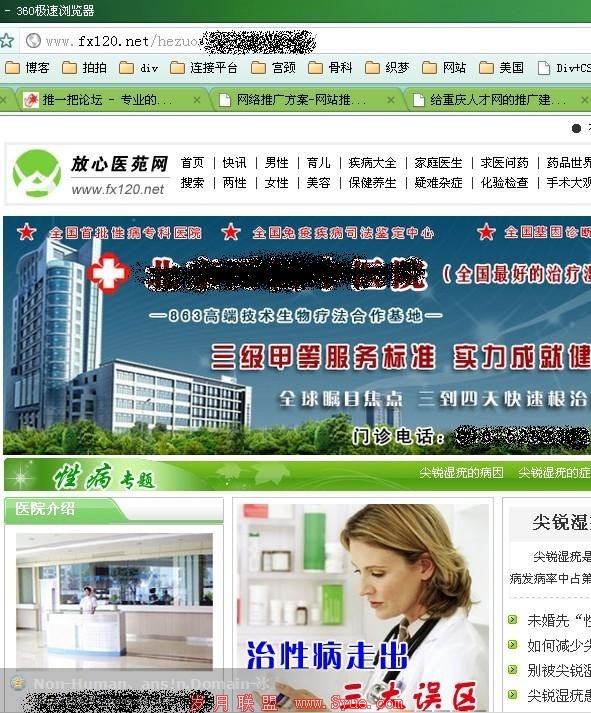 前段时间北京某医院的朋友来问我,应该如何推广他们医院的网站,我大概看了一下他们医院在北京知名度还是比较可以的,seo方面做的也不错,一些比较热门词在北京地区也是优化到了首页,日流量也是大几千ip的,对于医院的网站来说已经不算太差了,我不知道他们平时用了哪些推广方法,也不知道他们还有多大的提升空间,仅作为一个外围人给他们一些参考吧。(其他地区搜索结果我不清楚了)