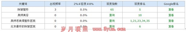 上边一点提到了关键词的选取,这里魔鬼弟弟我就在多加上一点。关键词的选取很重要!我是在医疗行业,这个行业的词竞争都很激烈。魔鬼弟弟我的水平还没到达那么强,我这里选取的词都是百度指数相对中等水平,且大多数是长尾关键词。为什么要这么选取?原因很简答,就是在你选取长尾的时候,不经意间会包含了2-3个或者更多的短词。长尾的词语排名上升后,会带动的的短词,而且做长尾的好处在于,如果客户出现搜索长尾,那么首先匹配的就是你的站点。从而为你带来流量。下图是我网站关键词的选取