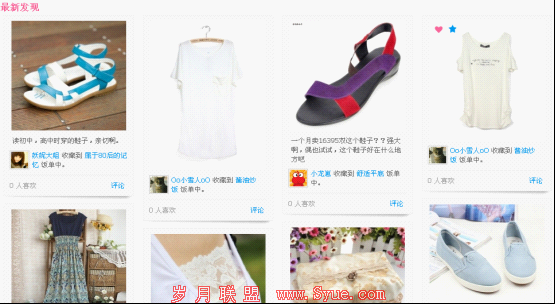 时光轴,我们都知道他俱有爆布流的展现方式,所以在用户浏览的时候我们完全不必点击下一页,只要我们轻轻下拉鼠标,就能轻松的看到所有的商品与及饭友的给力分享!