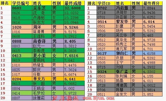 如图:最终新浪组和腾讯组综合成绩TIO20的学员名单