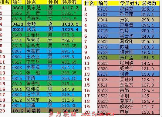 如图:新浪组和腾讯组转播任务TOP20的学员名单