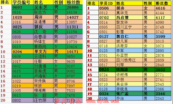 如图:新浪组和腾讯组粉丝任务TOP20的学员名单
