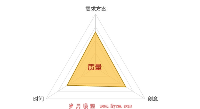 需求方案、时间、创意三个变量共同决定着作品质量;例如上图中黄色三角形的面积,通常来说面积越大则质量越高;当时间比较紧张时,则可以通过创意部分提升设计质量。