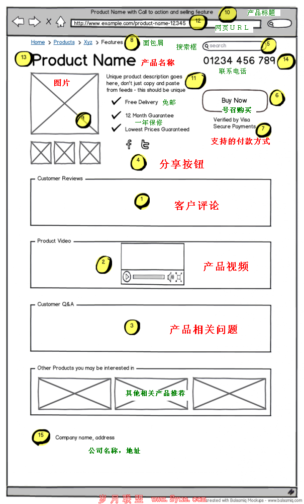 今天来介绍一下怎么优化一个产品购买页,让它对于搜索引擎和用户都是最优的。上图已经罗列了需要注意的15个方面。下面将会逐个详细分析他们的重要性。