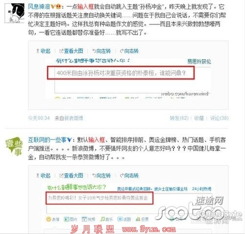 在大家可以接受范围内,向大家播报奥运,提供咨询,这是服务;而影响到大家的生活,制定捆绑性话题或业务,这就叫骚扰。新浪微博为让更多人关注奥运,用微博平台发布和参与奥运话题,强制性的推出了两款核心功能客户端弹窗、输入框内容预设。这两个功能遭到用户反感。绑架式的话题讨论,严重影响用户体验。而为吸引眼球或者另有所图,奥运首日放出奥运数据“标新高”又遭质疑。