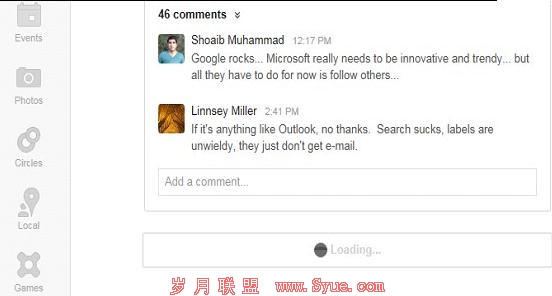 加载的过程:下拉自动翻页的功能,会载入较多内容,如果没有loading..等字样,告诉用户你所看的内容正在加载,荣请稍等片刻。用户会感到迷惑之前,还容易导致用户误以为自己的操作有误,容易撤销之前的操作。除了文字提示以外,Google plus 的做法在Loading的圆球增加动态的效果,告知用户你所等待的内容正在加载。