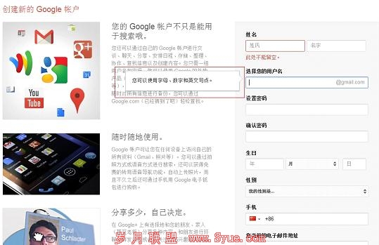 (Google 注册界面表单的提示信息 )
