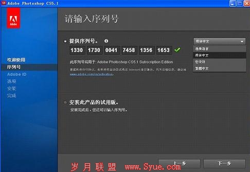 (序列号输入正确对勾提示状态)
