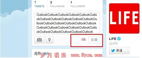 (Twitter文字超出提示状态)