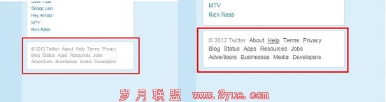 链接的移入和移出:网站产品特性不同,整个页面的长度会在一屏显示,在不影响视觉的前提了,我们需要对某个模块弱化或者是强化。比如说网站页脚,用户点击相对比例比较低,我们将弱化显示,当鼠标移入到产品模块当中,模块颜色会加深。在这方面twitter产品是一个不错的范例,默认页脚灰色字体,不会喧宾夺主,当用户鼠标移入到这个模块当中,系统判断用户可能需要通过页脚了解网站的相关信息,文字区域色值改变,由灰色变成黑色。在视觉呈现的方式上,正面反馈可以让我们的用户体验更上一层楼,如虎添翼。