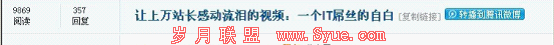 1.发布一周,通过优酷点击进来的站长观看次数高达31万