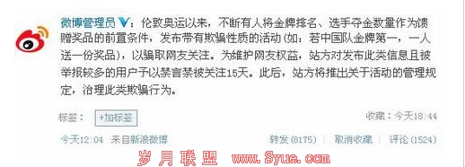 第一:奥运会伴上“有奖转发” - 微博(营销不分正反)