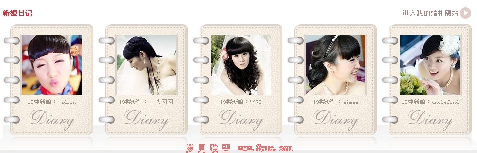 在这些日记中记载了婚礼当天自己所看到的,所经历过的点点滴滴,用过什么物品,接受过什么物品,等等都是很有味道的,分享出自己的经历,让每一个人都可以感受到婚礼的生活,仿佛自己也亲身经历过一般,这既是新娘日记板块的秘密,也是19lou极为推荐的一个栏目。