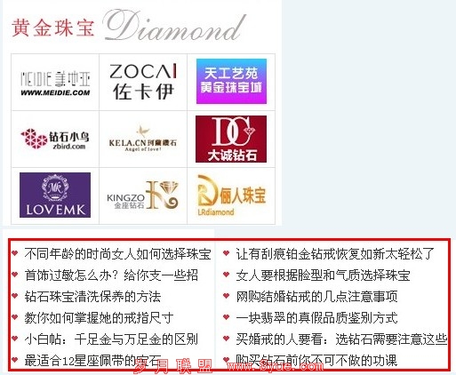 从这份图中,我们可以简单的看到,上方有各种珠宝店,下图中有各种珠宝的资讯以及保养手册,在很多时候,戒指永远是爱情的象征,永远会记得一句话,“交换戒指”这是多么庄重的一件事情,所以才有了这个板块,在很多时候,当我们注重摄影的效果的时候,往往就会忽略到结婚中彼此需要的物件,那么戒指就是属于必须品,那么我们开设这样一个板块也是为了大家都好,能够让一个网站更加屏蔽生辉。