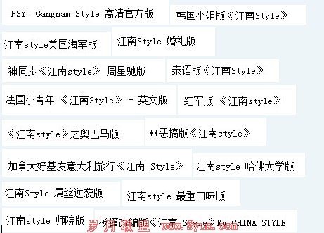 在江南style版本之中,笔者找到了如下图所示的江南style各种各样的版本,这种乱入版style,让营销跟上一层楼
