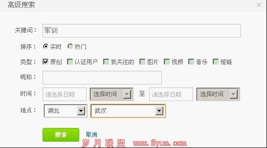 在选择地区,比如我要找武汉的大学新生,我就设置湖北武汉,然后搜索关键词“军训”