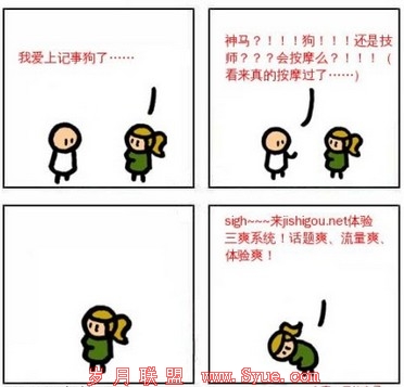 2、营销的结合点要巧妙:上图的插画故事中,从一场“误会”“错听”的对话中,把自己的产品解释清楚,重在一个“巧”字,这也是需要营销工作者认真思考的;以上事例中的公司的产品名称有一个“狗”字,但是实际上与动物没一点关系,经小编本人了解,该字只是为了体现该系统产品“嗅觉灵敏”、引流量效率高的意思;同理,“记事”两个字被误听成“技师”,也是一种谐音+情景的设计,希望看客在最后看到结果的同时,辩证的记住这个产品名称。可见“微黄式”营销的运用还是需要深思与推敲的。