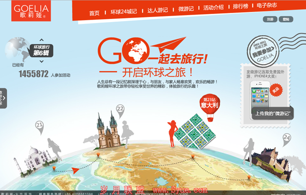 所以它的一系列互动营销都围绕着“旅游文化”来策划进行,比如之前的“GO,一起去旅行”用户可以互动分享自己旅游的点滴;今年5月5号,歌莉娅“爱.旅行”活动,用户可以在活动页面上写上自己和朋友的名字昵称(闺蜜,死党,老婆,老公等等),就可以自动生成一张很精致的电子小卡片,然后通过新浪,腾讯微博和人人网等等发生给到朋友。
