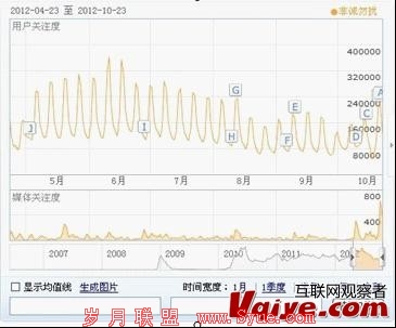 《非诚勿扰》是一档非常成功的电视节目,但是今夏《中国好声音》开播以来,依靠连续不断的话题轰炸,在收视排行榜独占鳌头,抢尽了《非诚勿扰》的风头。不过最近,依靠“副乡长遭全灭灯”这一话题的成功策划,《非诚勿扰》的关注度再次飙升,扭转了整个夏天的颓势。下图为《非诚勿扰》近几个月的百度指数。