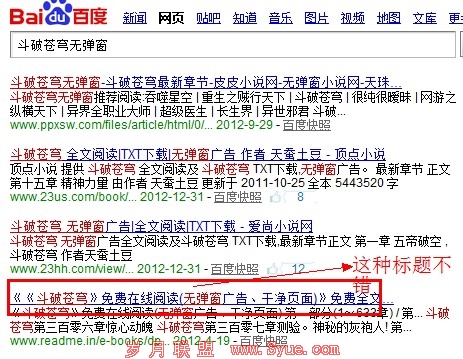 因为本身在追“斗破苍穹”的时候,习惯了搜索,然后去百度上,然后发现有几百上千个网站都有更新,于是乎,就随便跳了几个,可是弹窗广告弹的实在受不了了,正在想有没有哪些网站是没有弹窗的,于是试着搜索一下,发现,如图