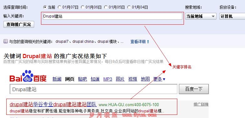 这里有一个注意事项,比如Drupal建站”,我出1元,2元,3.5元等不同的价格,但带来的估算排名和点击量是一样的,特别是估算排名是1-3的时候,一定要注意多出几次价格,争取以最少的价格带来最好的排名!
