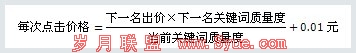 由以上公式可得出结论:1.点击价格会受到质量度的影响。同等情况下,质量度越高,需要付出的点击价格越低。因此可以通过不断优化质量度以降低推广费用,提升投资回报率,2.由于竞争环境随时可能发生变化,即使您的出价不变,同一关键词在不同时刻的点击价格也可能不同,那我就想知道,竞争对手的出价是多少呢?答案是没办法查询!那我们只能瞎子过河靠摸了!我的调价过程中这样的.