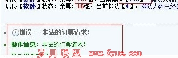 抱着尝试的态度,元创下载了一款猎豹浏览器,然后登陆进入12306,设置好车次,日期,以及想买的火车票座次信息等等,输入验证码,然后点击自动订票,没多久就选中了一张火车票,以为能够进行支付的时候,结果提示说是非法订票请求,我再一次的尝试,结果还是非法订票请求,最后眼睁睁的看着这个车次的票从有到无。