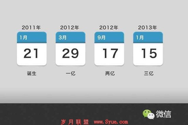 2011年1月至今,微信用2年的时间突破了3亿用户,随着智能手机用户的增长,未来的移动互联趋势已经显而易见。