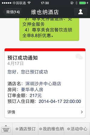 维也纳酒店微信订房上线3个月日订房量提升1200%的秘密