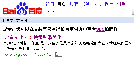 正在和群里朋友聊天的时候,居然看到百度搜索“SEO”出现了竞价排名!如图: