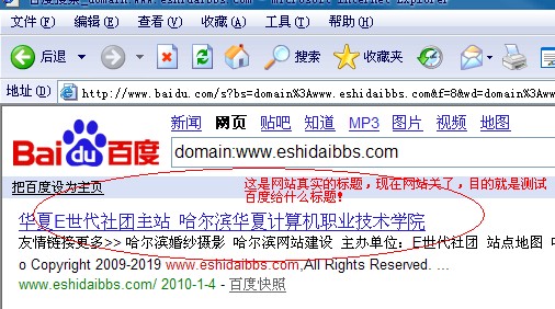 哈尔滨seo的测试:本人的站有图为证设置标题后,几天被百度收录了,接下来我又在自己的博客里面设置了锚文本,