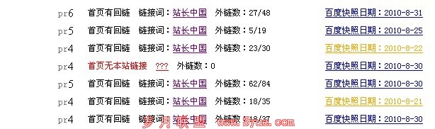 网站的部分友情链接。这个网站的快照是8-22,而图中的友情链接显示快照日期基本上都是31号的最新快照。