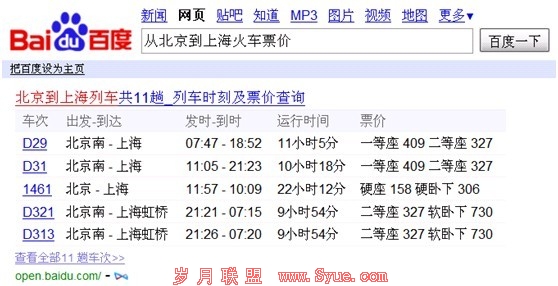 在图3中,需求分析需要识别出该query具有查找火车时刻表的需求,并解析出起点站为北京,终点站为上海。进而直接为用户展现出从北京到上海的火车时刻表,极大地方便了用户获取相关信息。