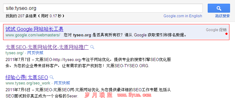 不过大家会不会觉得眼熟?现在来看看谷歌site 太原SEO 的页面是怎样的: