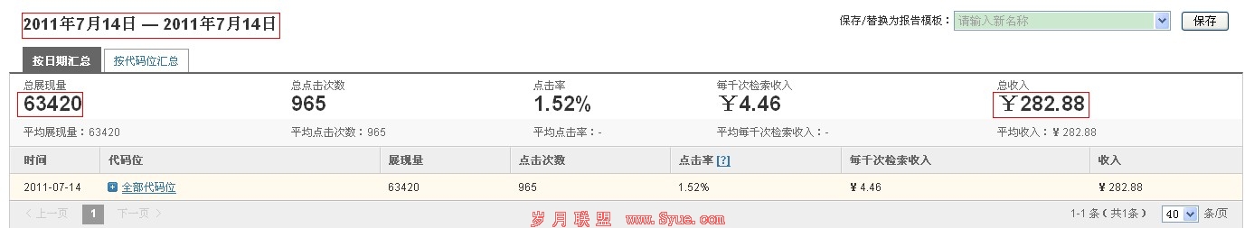 这是2011年7月14日的一份百度联盟收入报表,网站当天ip在1.5w左右,收入282元,那我们可以大概估算一下,如果一个网站日均15w ip的话,每天的收入将可以达到2820元,对于个人站长来说,一个月的收入也有10w rmb左右,应该算是一份不错的收入了,这还不算网站同时投放google adsense 和其他广告联盟。并且这个网站的pv和ip几乎相当,如果用户体验做的更好的话,收入将会更多。并且百度联盟目前结合百度搜索,根据用户的搜索习惯自动匹配显示的广告,比如一个用户刚才在百度搜索背背佳,当他访问一个展示百度联盟广告的网站时,显示给他的广告就是与背背佳相关的广告,大大提高了用户的点击率。