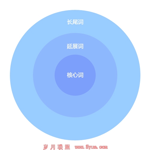 一直都有一个很模糊的概念,就是何谓延展词,何谓长尾词。核心词大家都很明白,而基于核心词的延展而来的关键词就是延展词,比如上文提及的“上海网站建设”、“网站设计”等;长尾词是在延展词的基础上进一步延伸而来的关键词,比如“上海专业网站建设公司”。一般而言,一个网站可以有一个核心词,十数个延展词,但是长尾词却可以达到几十个甚至成百上千个。核心关键词是圆心,随着半径的不断扩大依次是延展词、长尾词。同心多圆的关键词确定方法,能有效地积聚网站权重至核心关键词,是事半功倍的好方法。