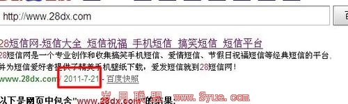 网站快照二:直接点击今日收录,出现的时间是2011-7-27