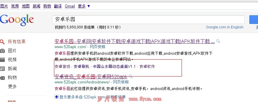 Google Sitelinks 是怎么样的呢、比如我在谷歌搜索安卓乐园 在网站下面出现了目录这也是Google Sitelinks。