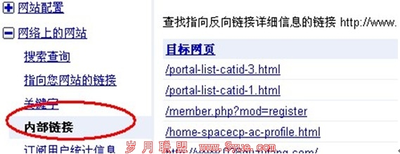 当我们网站的长尾关键词得不到排名的时候,就应适当分析一下网站的内部结构,一般来说网站能够在google的前七十六页被展示,那网站内部结构基本没有问题,因此长尾关键词得不到相应的排名就是网站内部链接导致的了,因为网站的内页的全部大部分都依托上层页面,所以应该对网站内部链接进行详细分析调整,这时google管理员工具就能够发挥相应作用了,如下图: